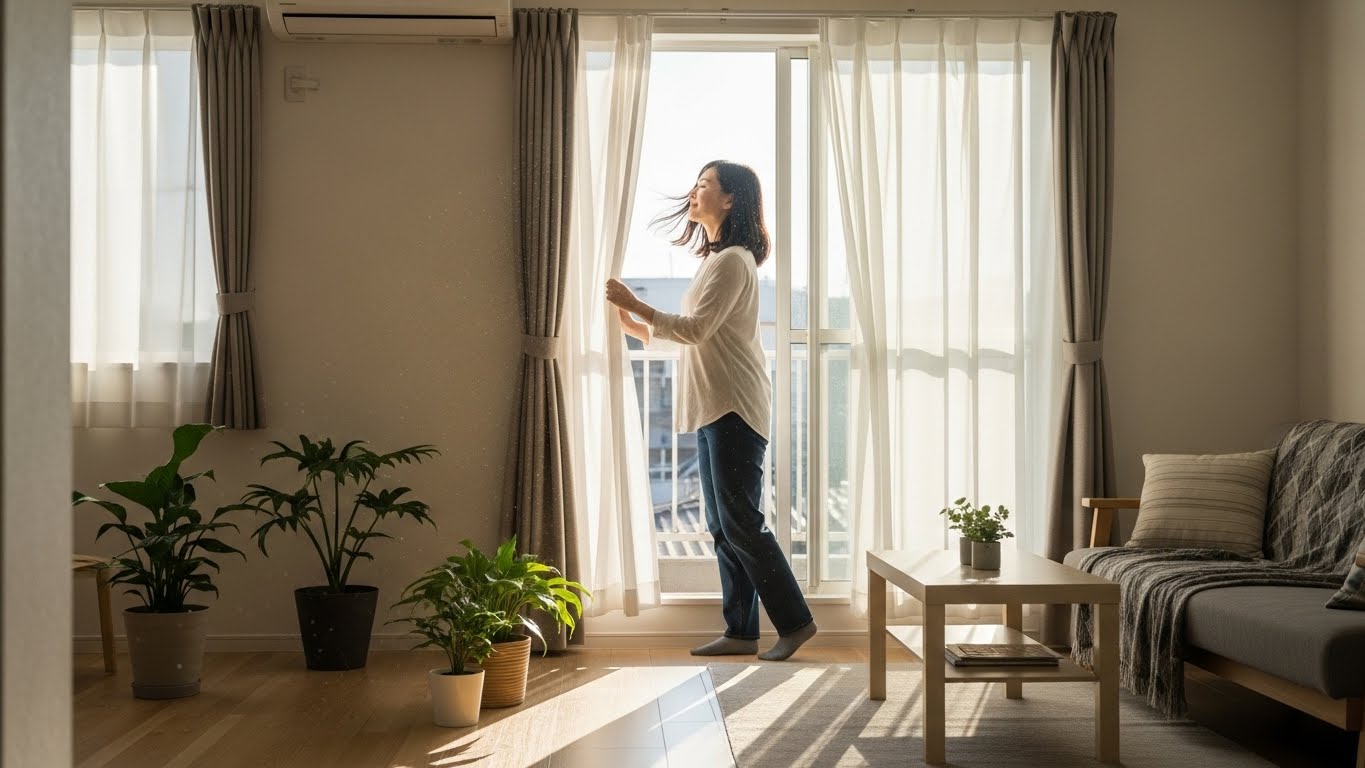起きたらすぐに窓を開け、夜の間に溜まった古い空気を外に出します。